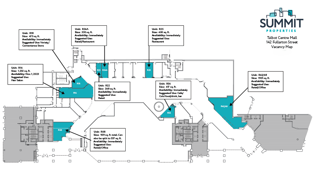 Built to serve the bustling Talbot Centre business community and surrounding downtown office facilities, Talbot Centre Mall is 42,725 square-feet of unique food and shop destinations. This hidden jewel is just steps from downtown and adjacent to the high-traffic Richmond Row, it offers a built-in clientele of customers.